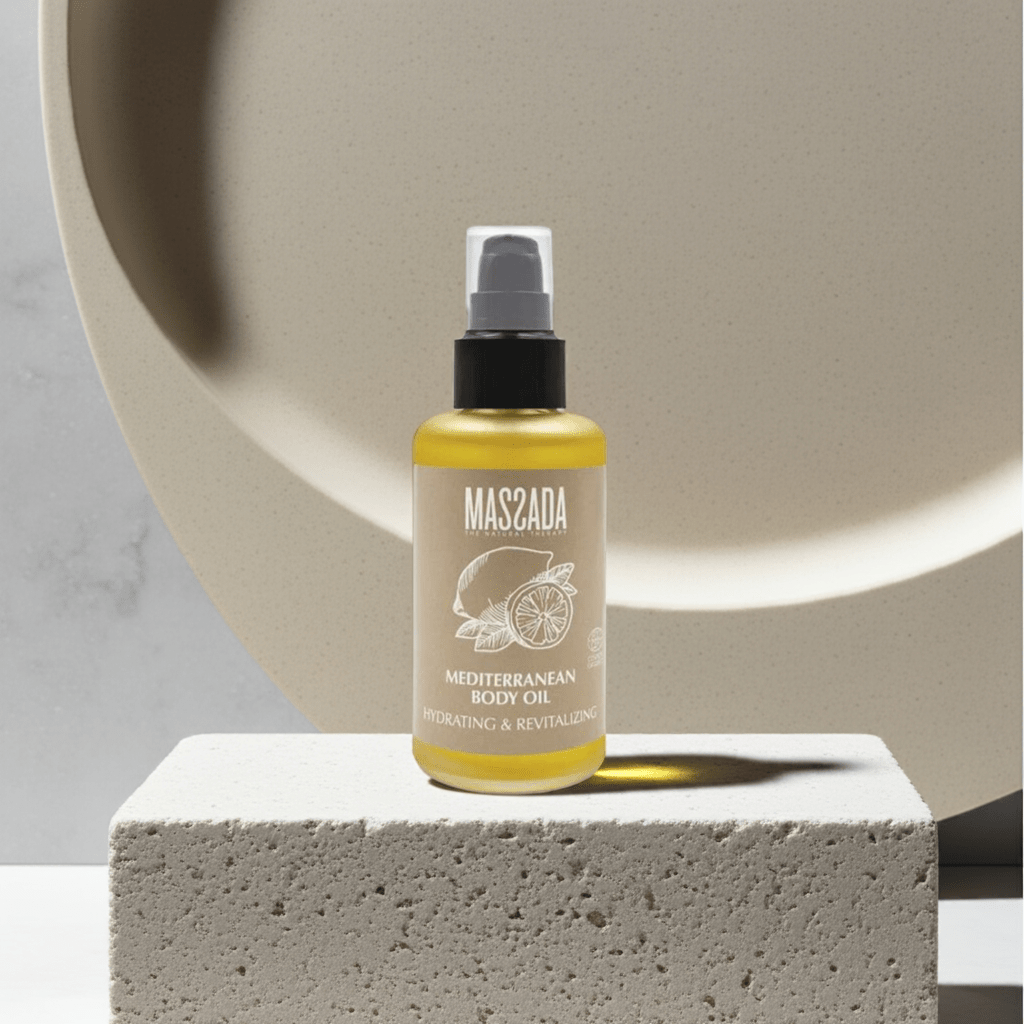 Aceite de Naranja y Limón de Massada es una loción untuosa que revitaliza y regenera la piel.