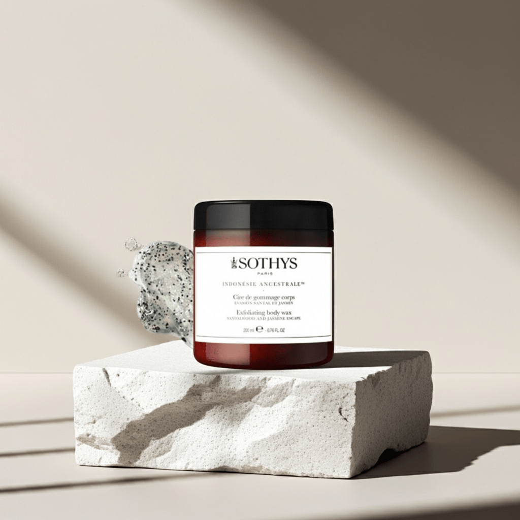 Cera de Gommage Corporal Sándalo y Jazmín de Sothys . Una exfoliación a la semana con este producto deja la piel suave, flexible y fragante. Es en textura cera. Su fragancia va transportarte al lugar más exótico y relajante. Es un viaje de sensaciones que prepara la piel.