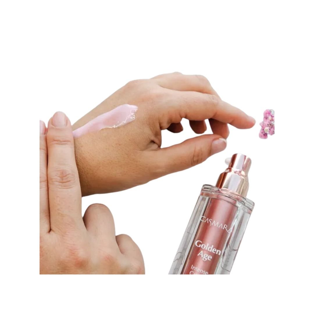 - Aplica la Crema Intense de la línea de Golden Age de Casmara, realiza ligeros masajes con movimientos envolventes. Deja que actúe unos segundos antes de maquillarte o continuar con tu rutina.