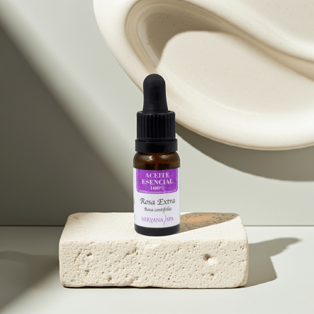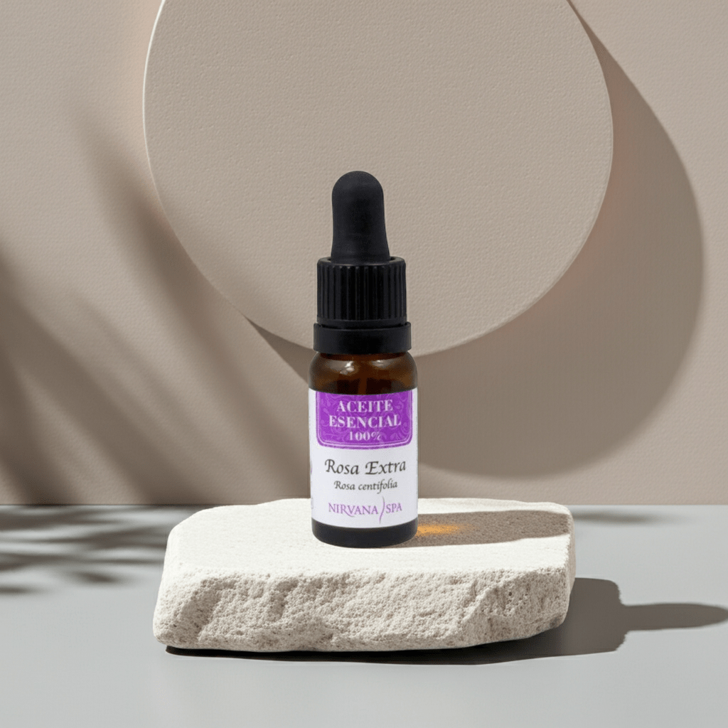 Aceite esencial de Rosa Extra, ideal para pieles sensibles. Regenera, hidrata y tonifica, aliviando ansiedad y mejorando tu piel.