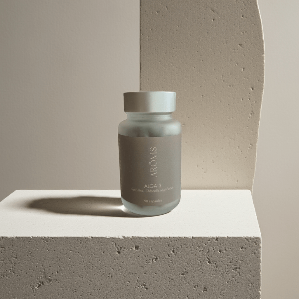 Alga 3 Remineralizante Nutricosmetics de Aroms Natur es un complemento alimenticio que mejora la flacidez y recupera el tono de la piel. Mantiene la piel hidratada, tersa y firme. Gracias a sus activos consigue remineralizar el tejido. piel más densa. Reafirma el cuerpo y redensifica la piel. Reafirma y tonifica.