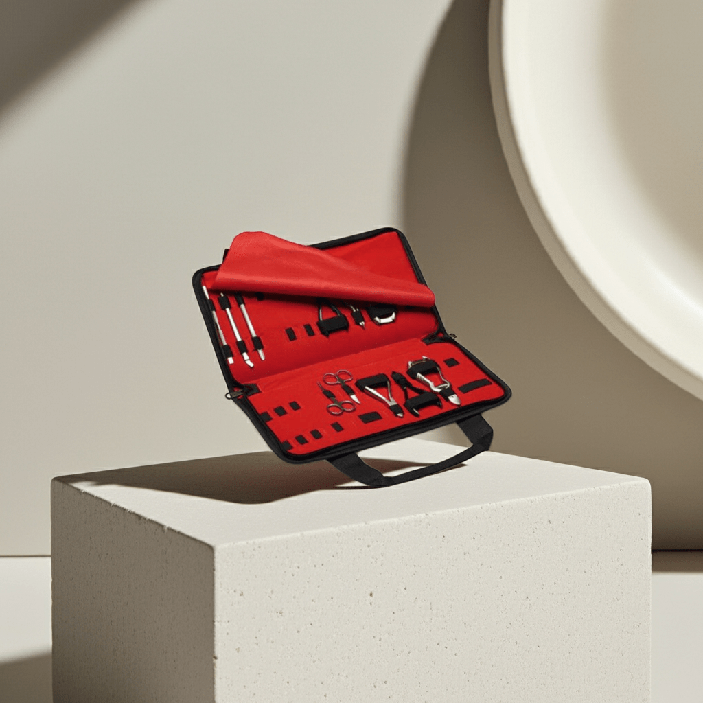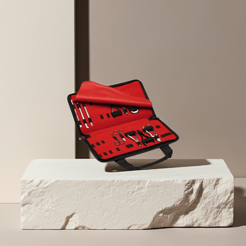 Estuche profesional con 11 utensilios para manicura y pedicura. Ideal para el cuidado completo de tus uñas en casa o de viaje.