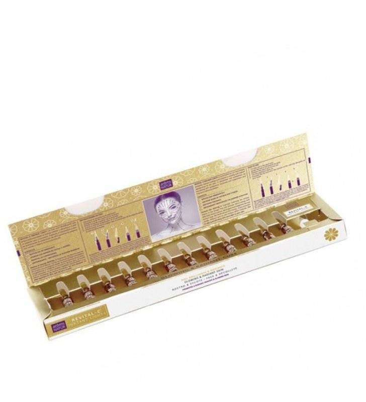 con estas ampollas disfrutará de un 15% de Vitamina C natural. Este tratamiento está enfocado para pieles envejecidas, opacas, con manchas y desvitalizadas. Tratamiento apto para todo tipo de pieles.