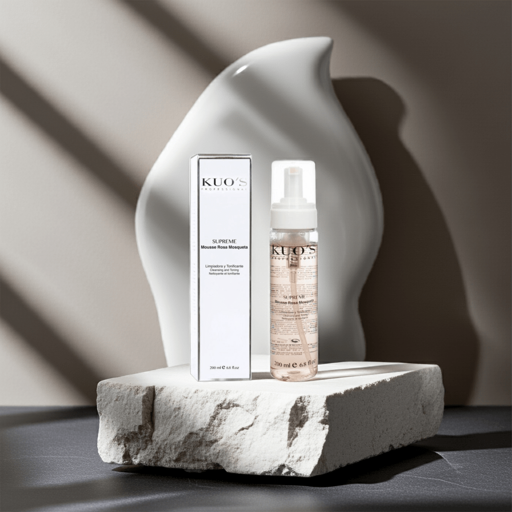 Supreme Mousse Rosa Mosqueta de Kuo's Professional es un tratamiento limpiador que calma y suaviza la piel.